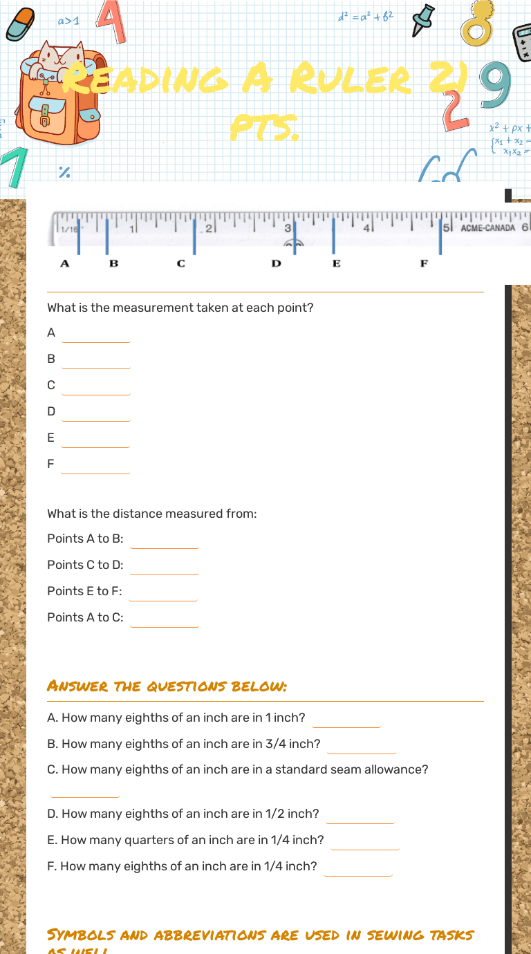 Choose an answer and hit 'next'. Learn how to read a ruler or tape measure · ruler reading worksheets / quizzes · reading a ruler part one (1/2 and 1/4) · reading a ruler part two (1/8) · reinforce . Answers may vary depending on your printer settings. Students can get comfortable with the concepts of measurements like . Reading a metric ruler · reading a metric ruler · reading a protractor.